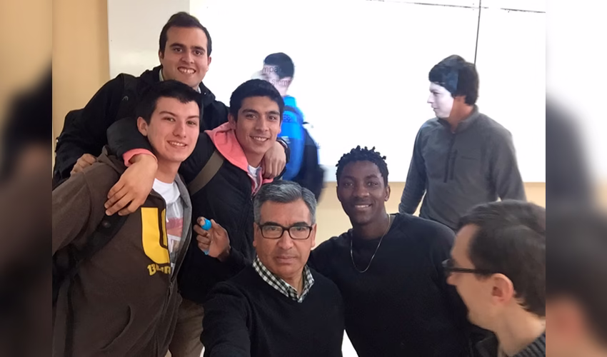 Euclides com seus colegas da turma de Engenharia Geomática na Universidade de Concepción, Chile.